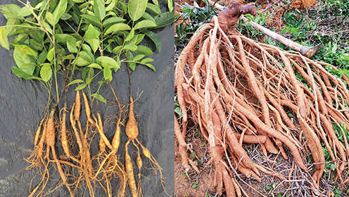 劣質(zhì)苗結(jié)薯特點(diǎn) 收獲期主根為木質(zhì)薯,其他分根薯細(xì)小,整棵重量少